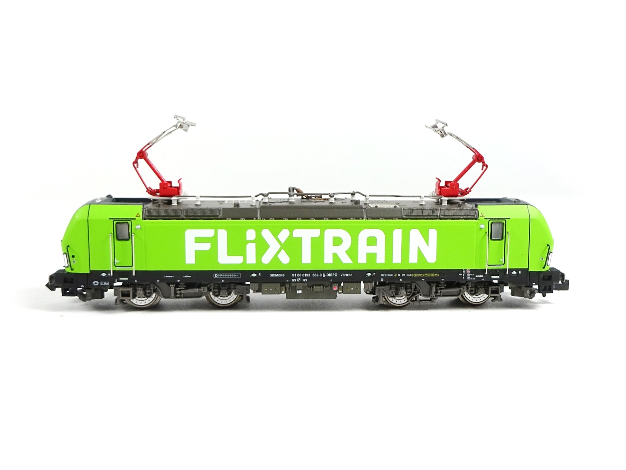 Vorbild: Elektrolokomotive Baureihe 193 (Vectron). Lokomotive der ELL Germany GmbH, vermietet an FlixTrain GmbH, München, registriert in Deutschland. Lok-Betriebsnummer 193 862-0. Betriebszustand um 2020. Epoche VI