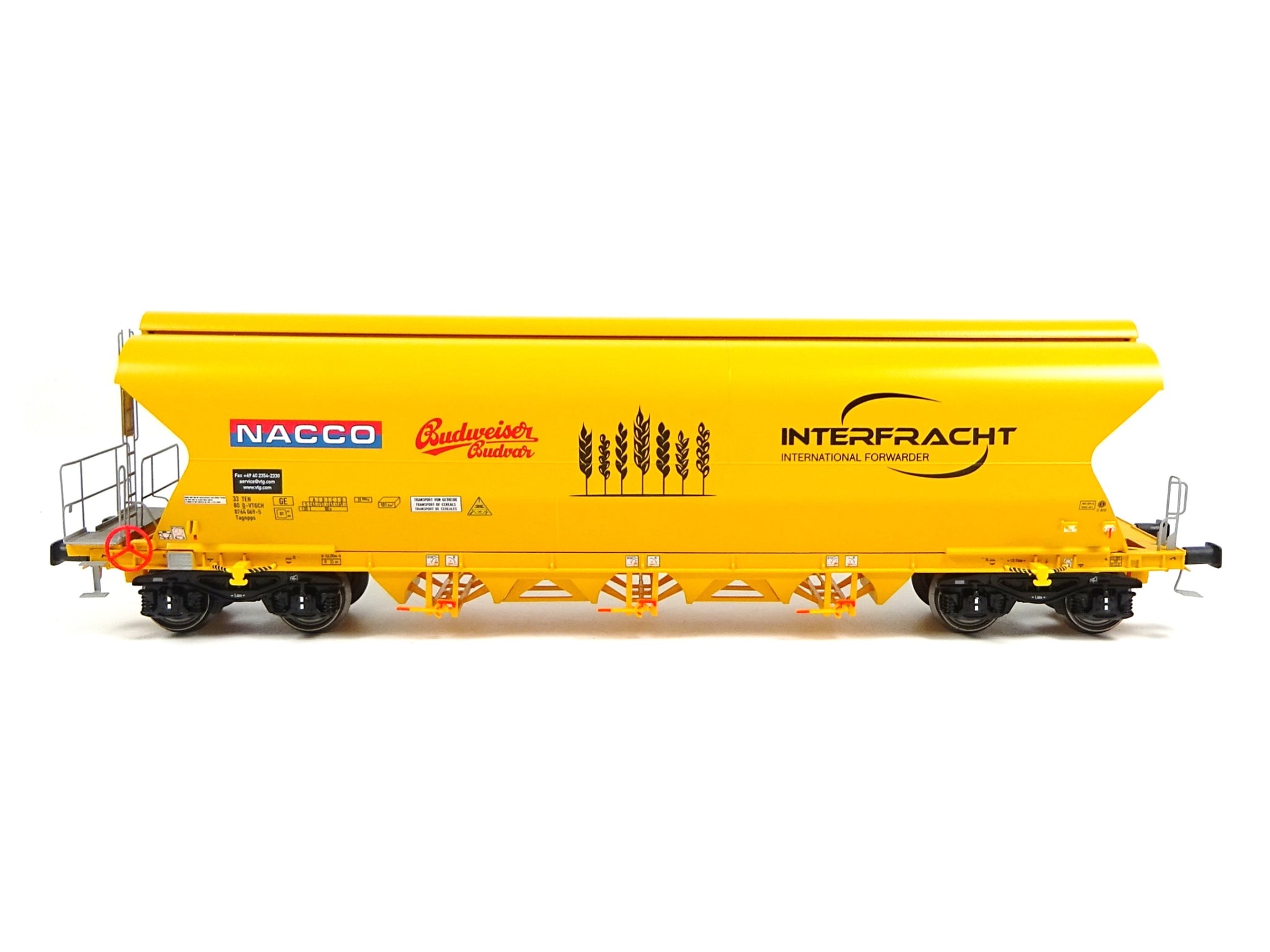 4-achsiger Getreidewagen Tagnpps 101m³, "NACCO - BUDWEISER", gelb, Epoche VI