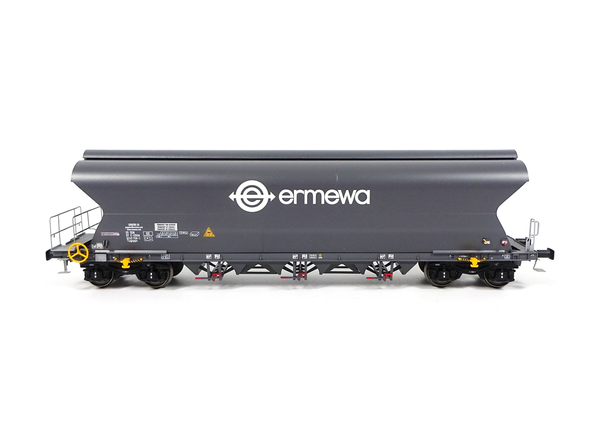 4-achsiger Getreidewagen Tagnpps 101m³ als Privatwagen der Firma ERMEWA, dunkelgrau, Epoche VI.