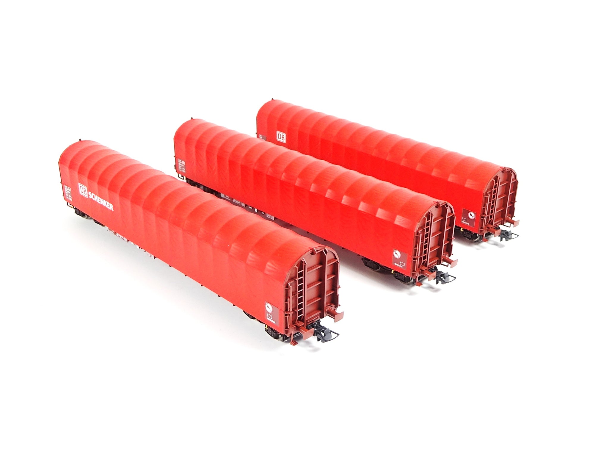 Vorbild: Wagenset bestehend aus drei Schiebeplanenwagen, Gattung Rilns, der Deutschen Bahn. Epoche VI