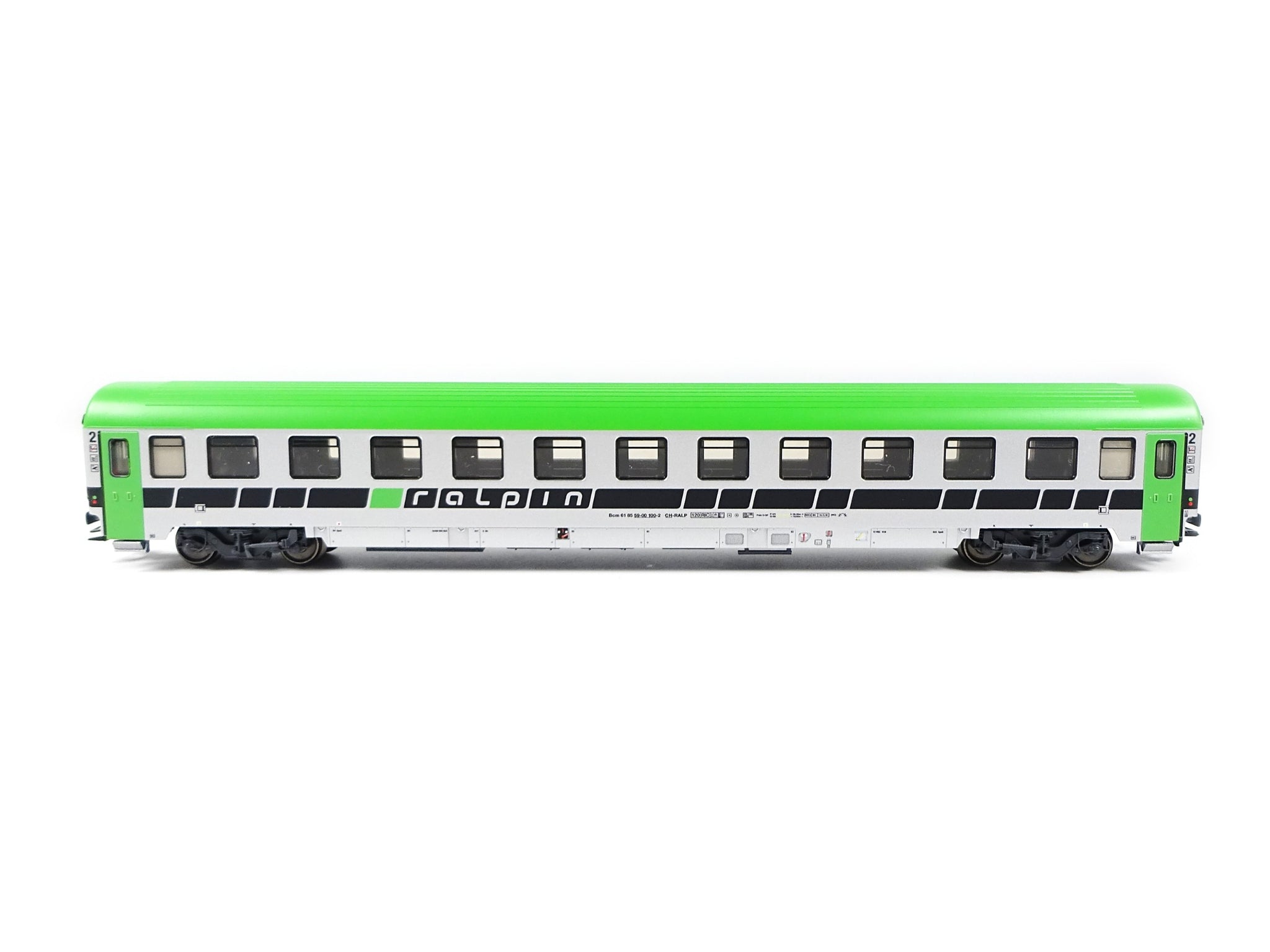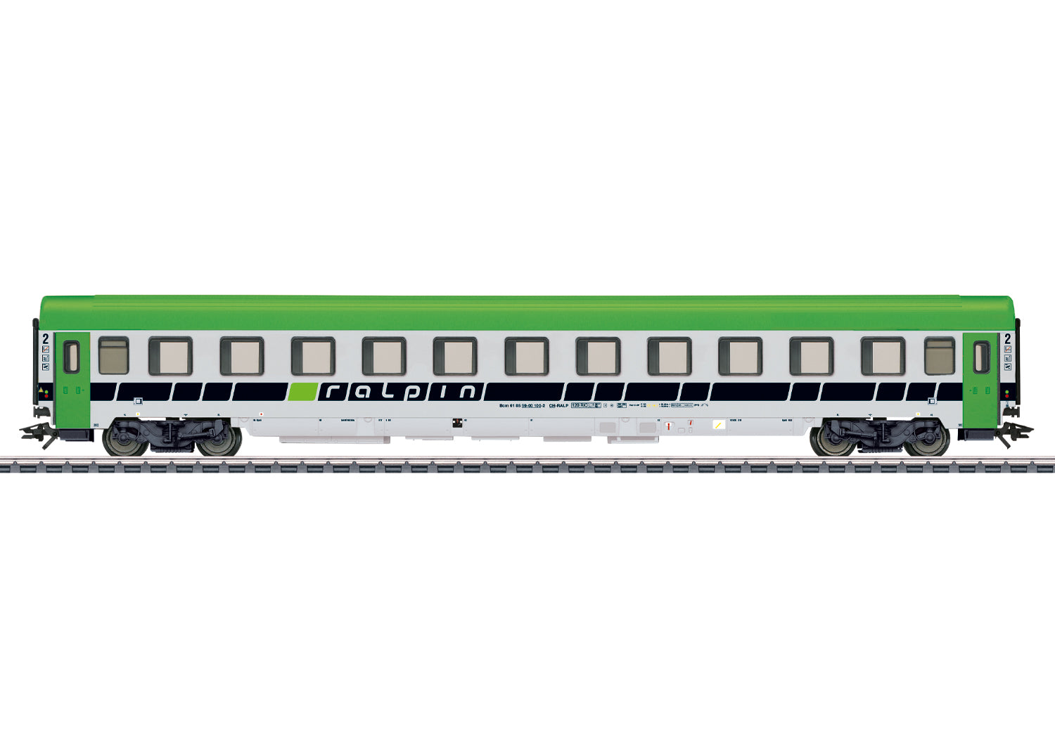 Modell: Auf Basis eines Reisezugwagens 2. Klasse Bauart Bmz. Typspezifisch gestalteter Unterboden. Fiat Drehgestelle Y0270 S mit Schlingerdämpfer und mit Magnetschienenbremse. Vorbereitet für den Einbau der stromführenden Kupplung 7319 oder 72022, Schleifer 73406, der Innenbeleuchtung 73410/73411 und der Zugschlussbeleuchtung 73407. Befahrbarer Mindestradius 360 mm.