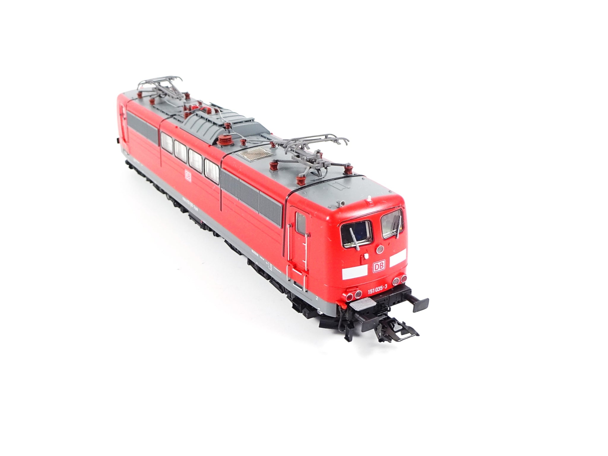 Vorbild: Elektrolokomotive Baureihe 151 der Deutschen Bahn AG. Verkehrsrote Grundfarbgebung. Betriebsnummer 151 035-3. Betriebszustand ab 2008. Epoche VI