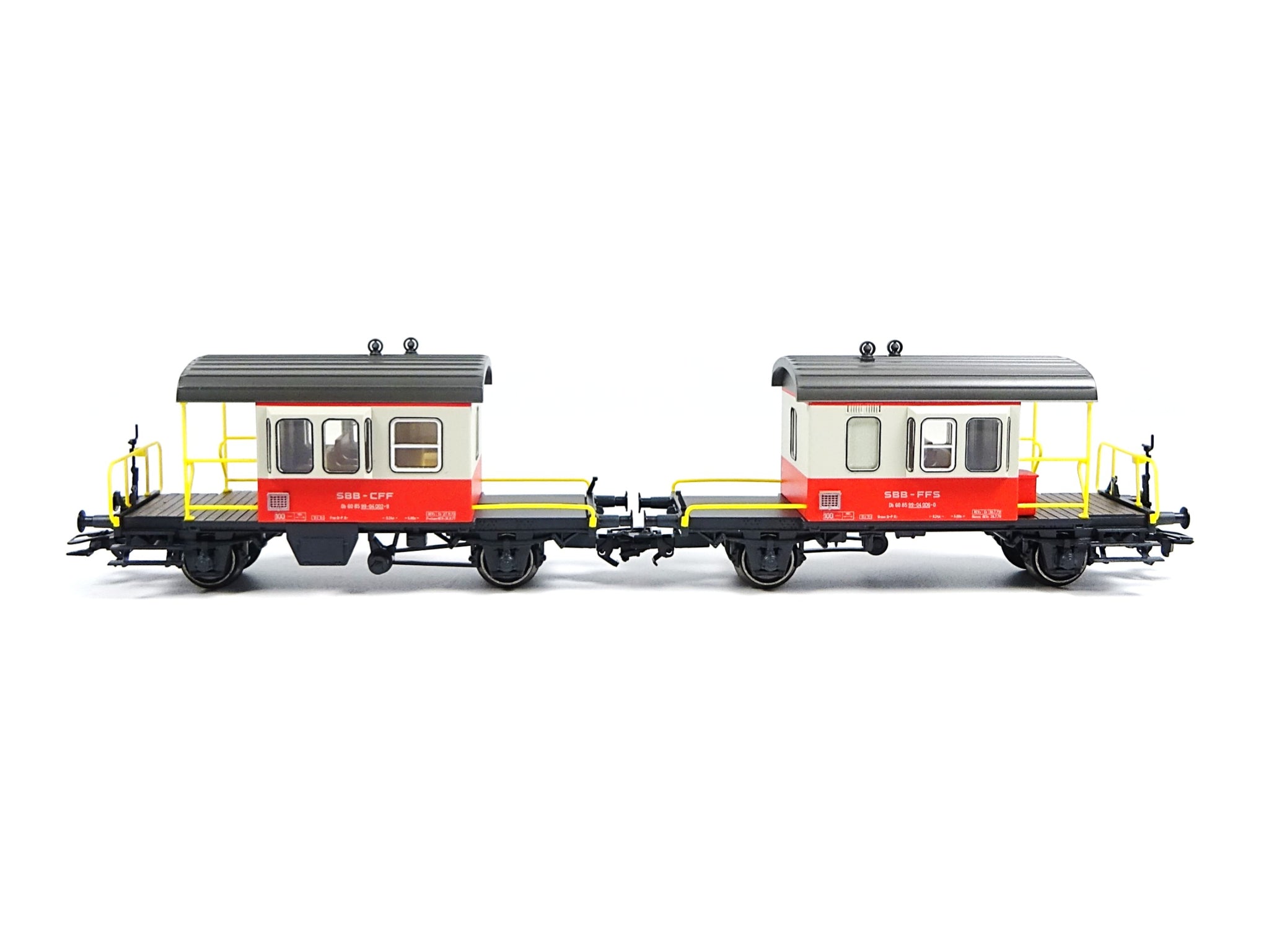 Vorbild: Zwei ehemalige Dienstbegleitwagen Bauart Db der Schweizerischen Bundesbahnen (SBB/CFF/FFS). Kieselgrau/Blutorange Grundfarbgebung im Einsatz als Kuppelwagen des Swiss Express. Betriebszustand ab 1975. Epoche IV
