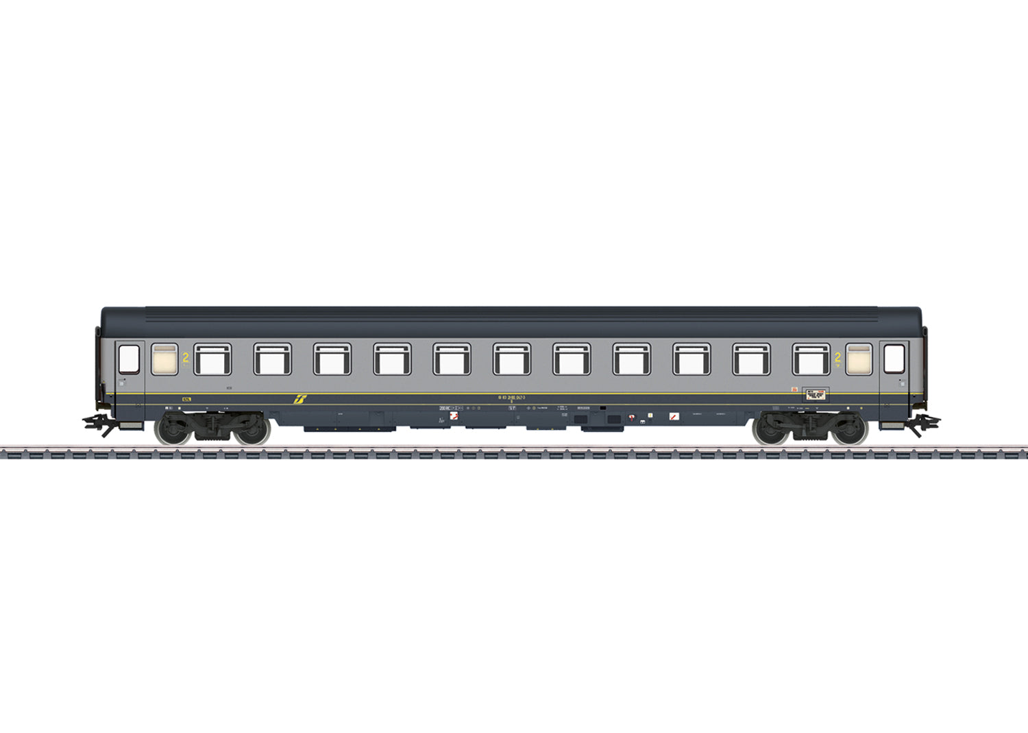 Vorbild: Abteilwagen 2. Klasse Bauart Bz Eurofima der Italienischen Staatsbahn (FS). In „Bigrigio“-Farbgebung. Wagenlauf EC 89 Paganini: München Hbf – Innsbruck – Brennero – Bolzano – Verona. Betriebszustand um 1995. Epoche V