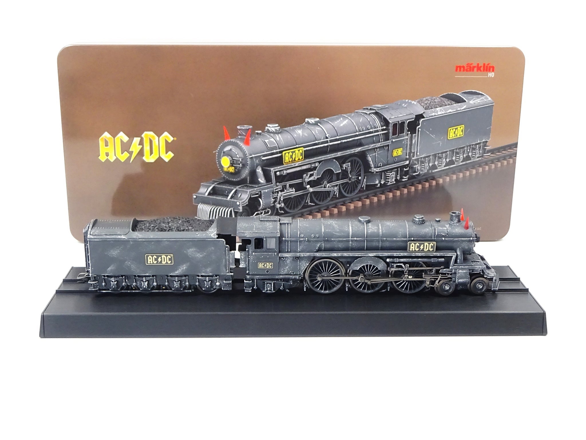 Modell: Mit Digital-Decoder mfx+ und umfangreichen Licht- und Soundfunktionen. Geregelter Hochleistungsantrieb mit Schwungmasse im Kessel. Drei Achsen angetrieben. Haftreifen. Lokomotive und Tender weitgehend aus Metall. Serienmäßig eingebauter Raucheinsatz, mit geschwindigkeitsabhängigem, dynamischem Rauchausstoß, digital schaltbar. Frontscheinwerfer mittig auf der Rauchkammertür der Lok und eine Lampe an der Tenderrückseite konventionell in Betrieb, digital schaltbar. Die Beleuchtung des Frontscheinwerfers kann auf rot umgeschaltet werden. Die AC/DC typischen Teufelshörner sind beleuchtet und können digital zugeschaltet werden. Führerstandsbeleuchtung und Feuerbüchsenflackern digital schaltbar. Beleuchtung des Tender-Durchgangs digital schaltbar. Beleuchtung mit wartungsfreien warmweißen und roten Leuchtdioden (LED). Verstellbare Kurzkupplung mit Kinematik zwischen Lok und Tender. Am Tender kinematikgeführte Kurzkupplung mit NEM-Schacht. Pufferhöhe an Lok und Tender nach NEM. Bremsschläuche, Schraubenkupplungsimitationen und geschlossene Zylinderdeckel liegen bei.