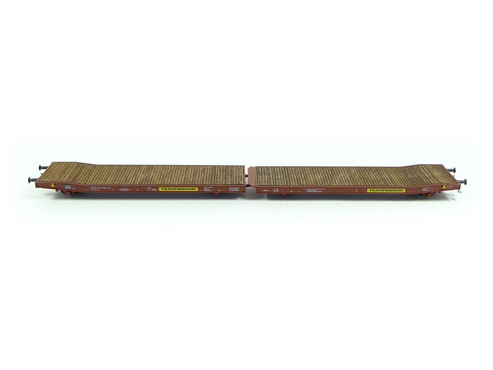 Flachwageneinheit Laaps, TWA, braun, der Transwaggon, für die Epoche IV-Wechselstromversion-