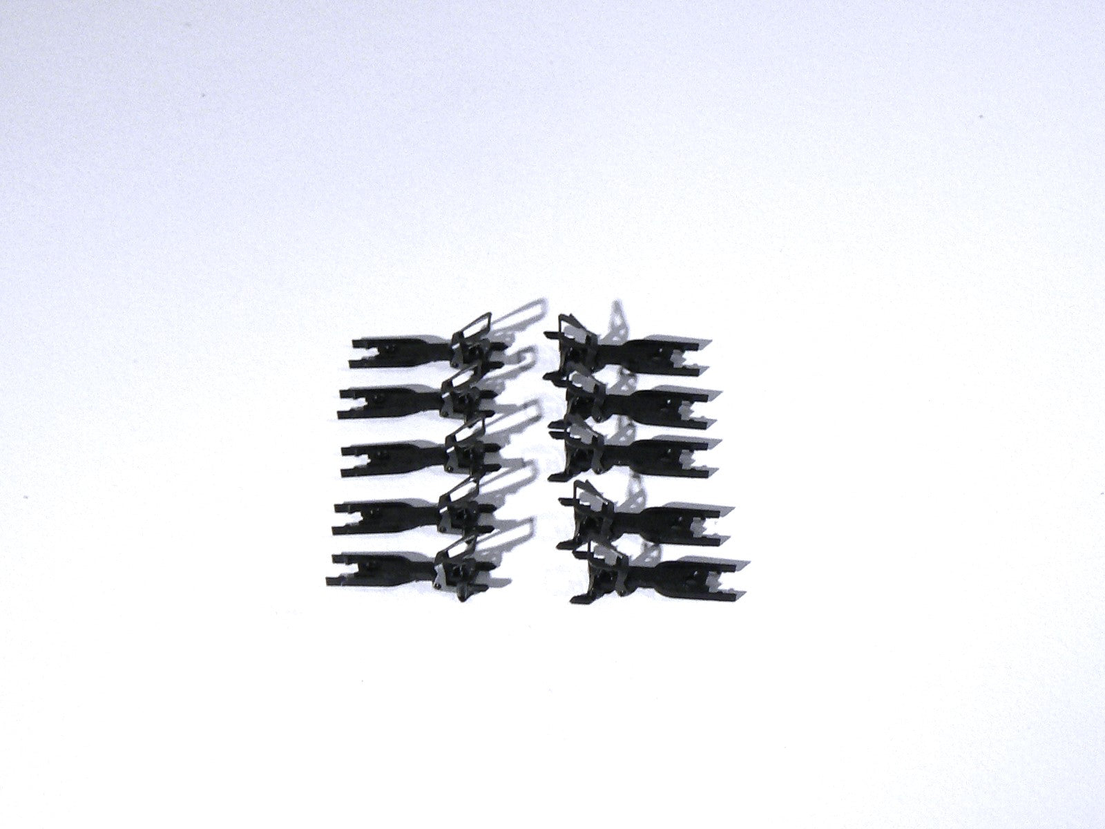 Kurzkupplungen für Fahrzeuge ohne Kulissenführung. Austauschbar gegen die serienmäßige Märklin-Kunststoffkupplung. Kupplungen für Wagen (für 701570 und 701580). Verringertes Kupplungsspiel bei gezogenen Fahrzeugen.