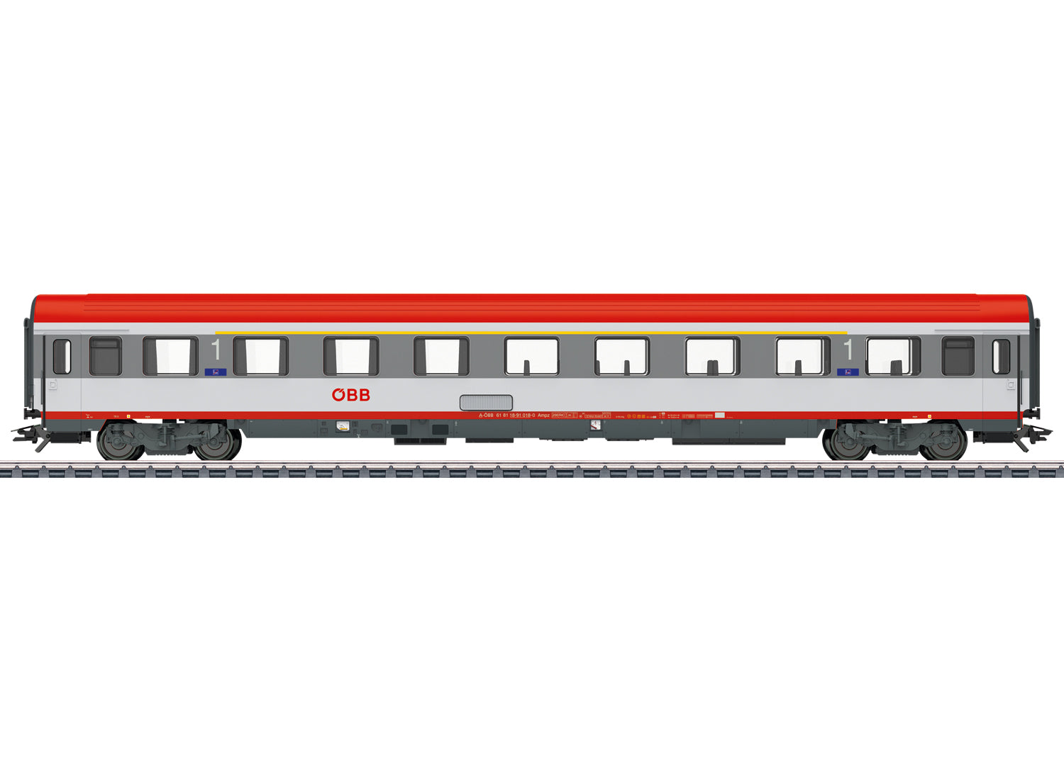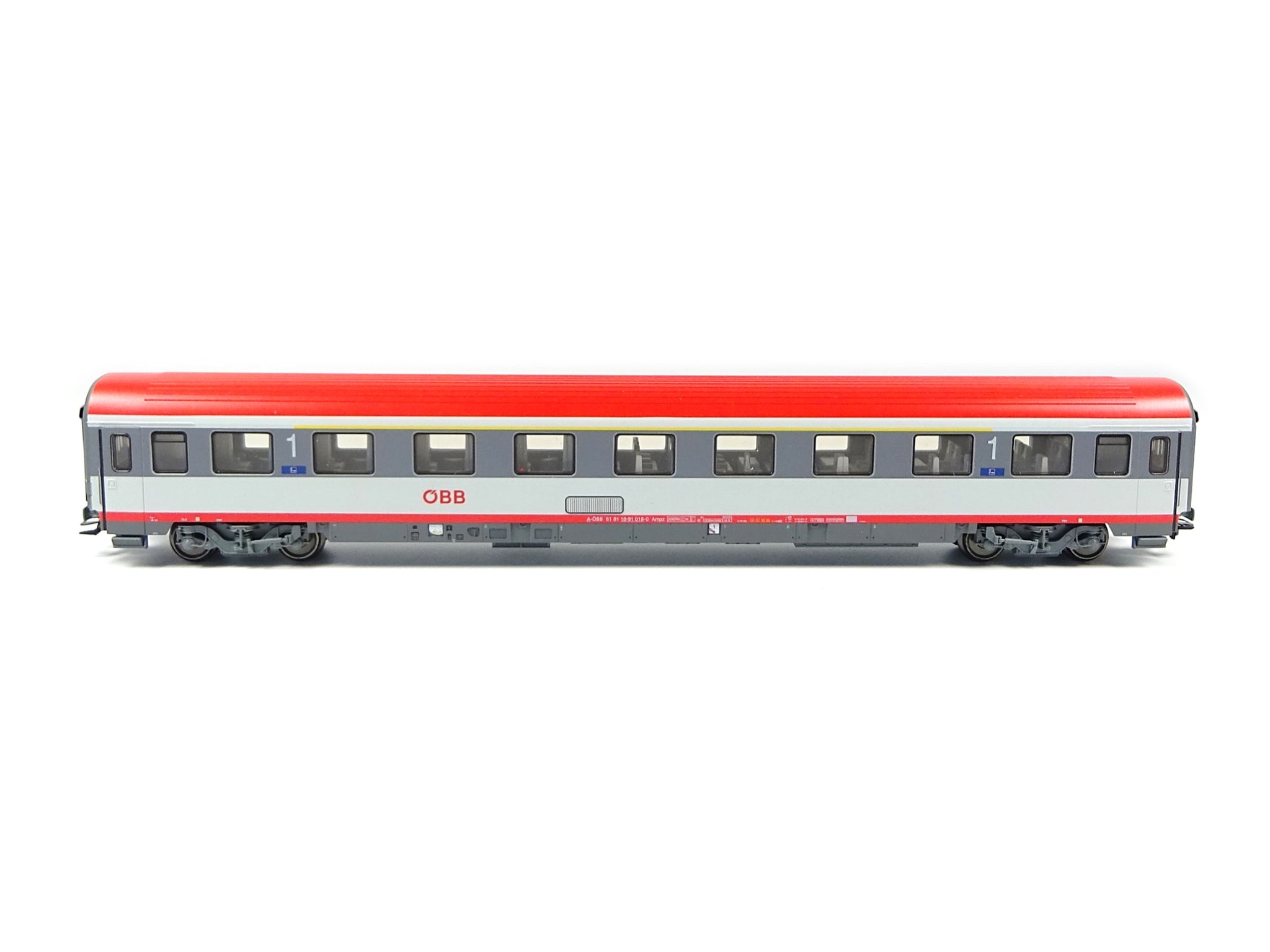 Vorbild: Reisezugwagen 1. Klasse Bauart Ampz der Österreichischen Bundesbahn (ÖBB). Eurofima-Wagen modernisiert, nicht druckertüchtigt. Betriebszustand um 2012. Epoche VI