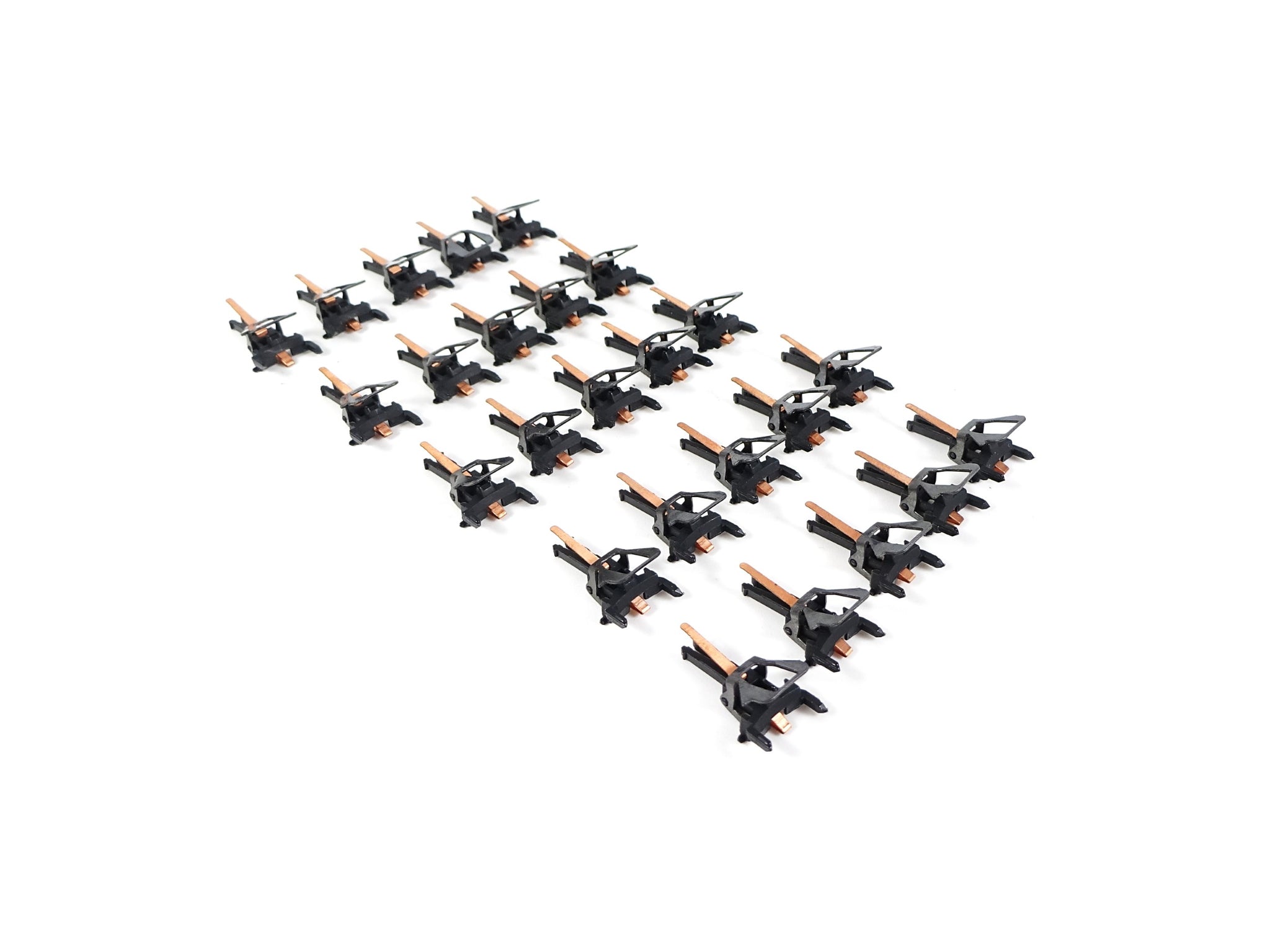 25 trennbare stromführende Kurz - Kupplungsköpfe, Bügel verchromt. Zum Einsetzen in Fahrzeuge mit Norm-Kupplungsaufnahmen (NEM 362)