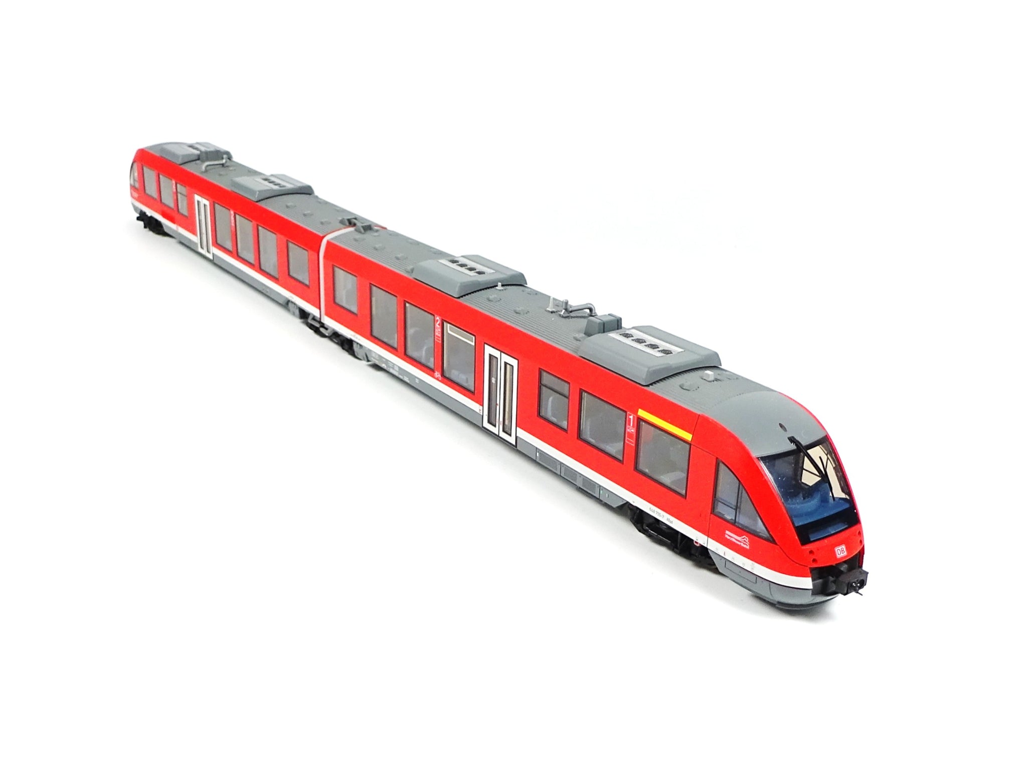 Vorbild: Nahverkehrs-Dieseltriebwagen BR 648.2 (LINT 41) der Deutschen Bahn AG (DB AG). Aktuelle Ausführung mit Tiefeinstiegen. Epoche VModell: Hochleistungsmotor mit Glockenanker und Schwungmasse im Jacobs-Drehgestell angeordnet. 21-polige Digital-Schnittstelle mit Brückenstecker für konventionellen Betrieb. 2 Achsen angetrieben, Haftreifen. Serienmäßig eingebaute Innenbeleuchtung. Spitzensignal und Innenbeleuchtungen mit wartungsfreien, warmweißen LED. Zugzielanzeige vorbildgerecht mit gelben LED. Spitzensignal, Innenbeleuchtung, Zugzielanzeige und 2 rote Schlusslichter konventionell in Betrieb, mit nachgerüstetem Decoder digital schaltbar.