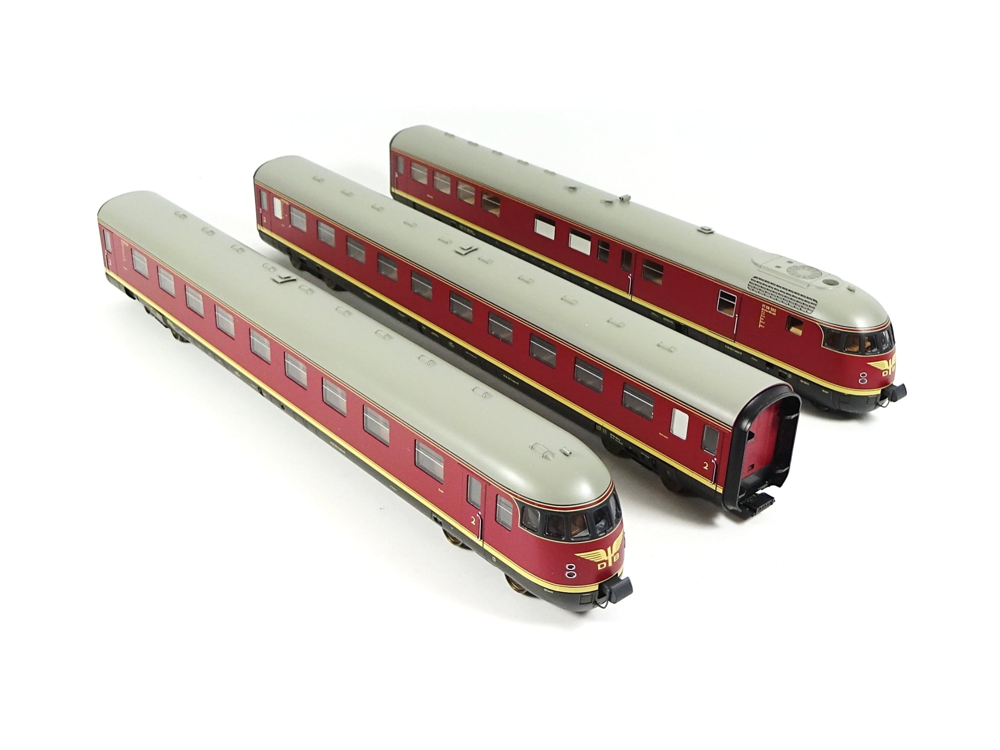 Vorbild: Schnell-Triebwagenzug Baureihe VT 08.5 der Deutschen Bundesbahn (DB). Dreiteilige Bauart mit Achsfolge B´2´+2´2´+2´2´. Epoche III