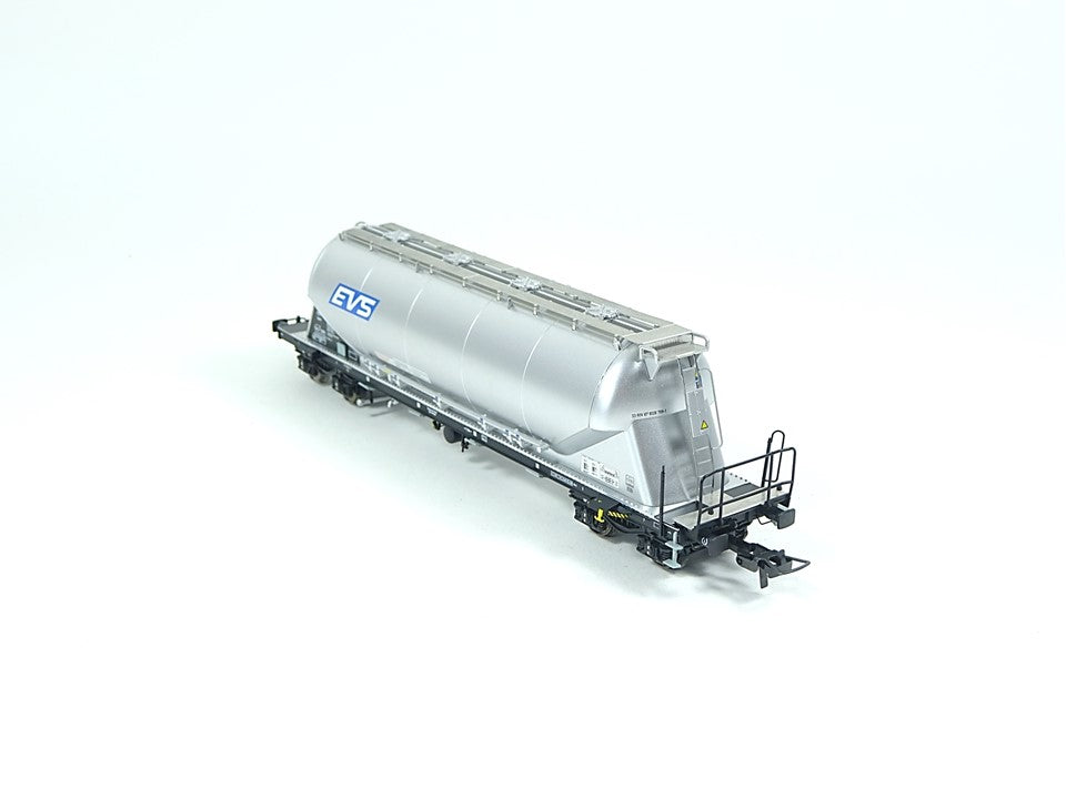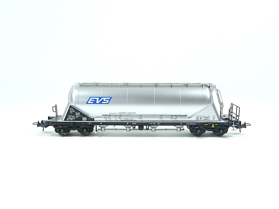 4-achsiger Staubsilowagen Uacns 82m³ als Privatwagen der Firma EVS, silber, Betriebsnummer 3780 9326 709-1. Epoche VI.